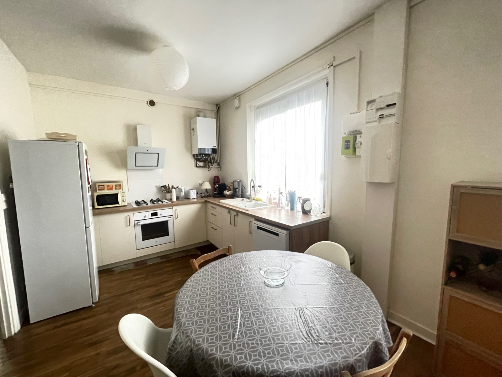 Les travaux récents comprennent notamment la rénovation de l’électricité, l’installation d’une chaudière gaz récente et la réfection complète de la salle de bains, offrant un confort moderne tout en conservant le charme de l’ancien.