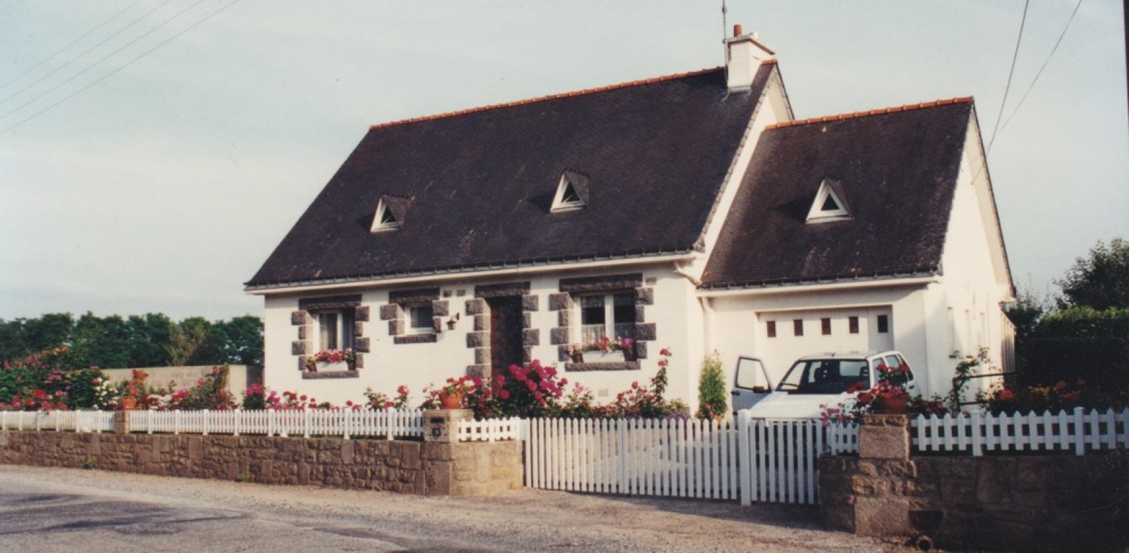 En plain pied: cuisine, séjour, 2 chambres, salle d'eau, wc, un garage latéral de 24m2. Pompe à chaleur récente, grenier aménageable, cave.