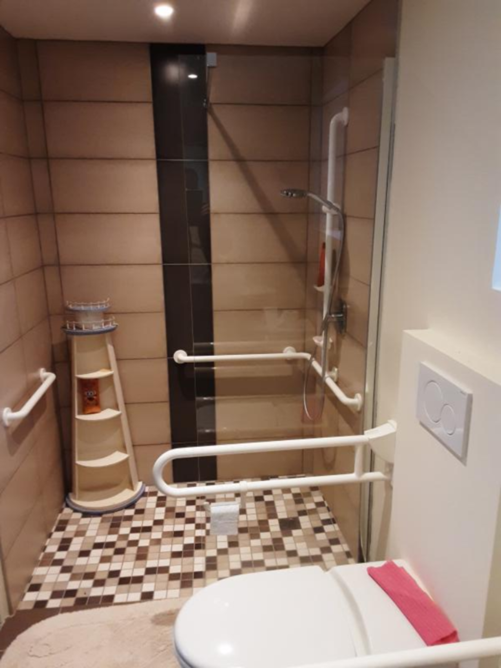 douche accès handicapé. Wc. Lavabo
