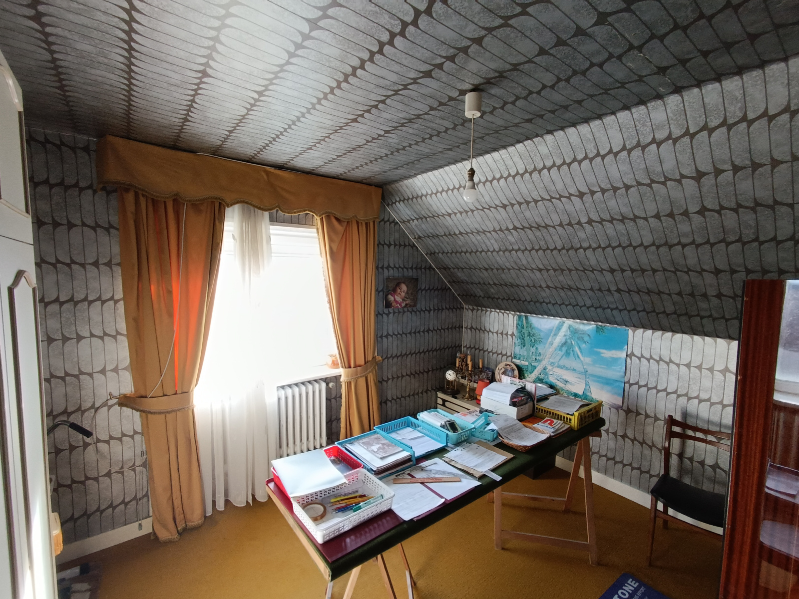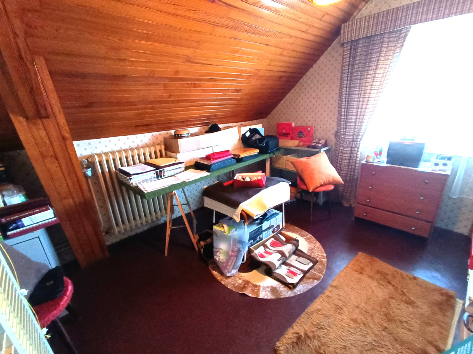 Rdc : grand espace garage de 45m2, chaufferie;1°etg : cuisine séparée, séjour, 1 chambre, 1 sdb,1wc; 2°etg : 3 chambres, 1salle d'eau, 1wc. 1 grand hangar/garage séparé sur le jardin cloturé de 795m2. Fermetures en PVC, double vitrage avec volets roulants. Tout à l'égout.
