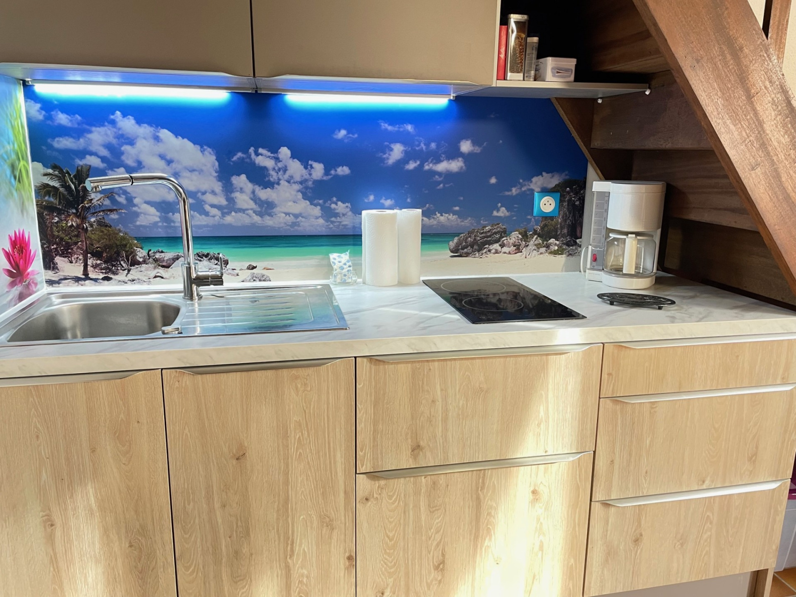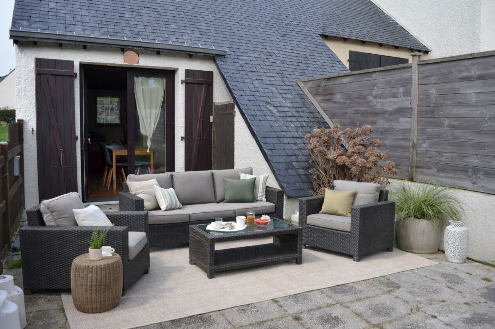 Uniquement chez nous ! Maison comprenant une pièce de vie ouverte sur cuisine, coin cabine salon, wc, salle de bains, à l'étage mezzanine faisant office de chambre, Location possible pour 4 couchages, cellier,terrasse avec jardin parking !