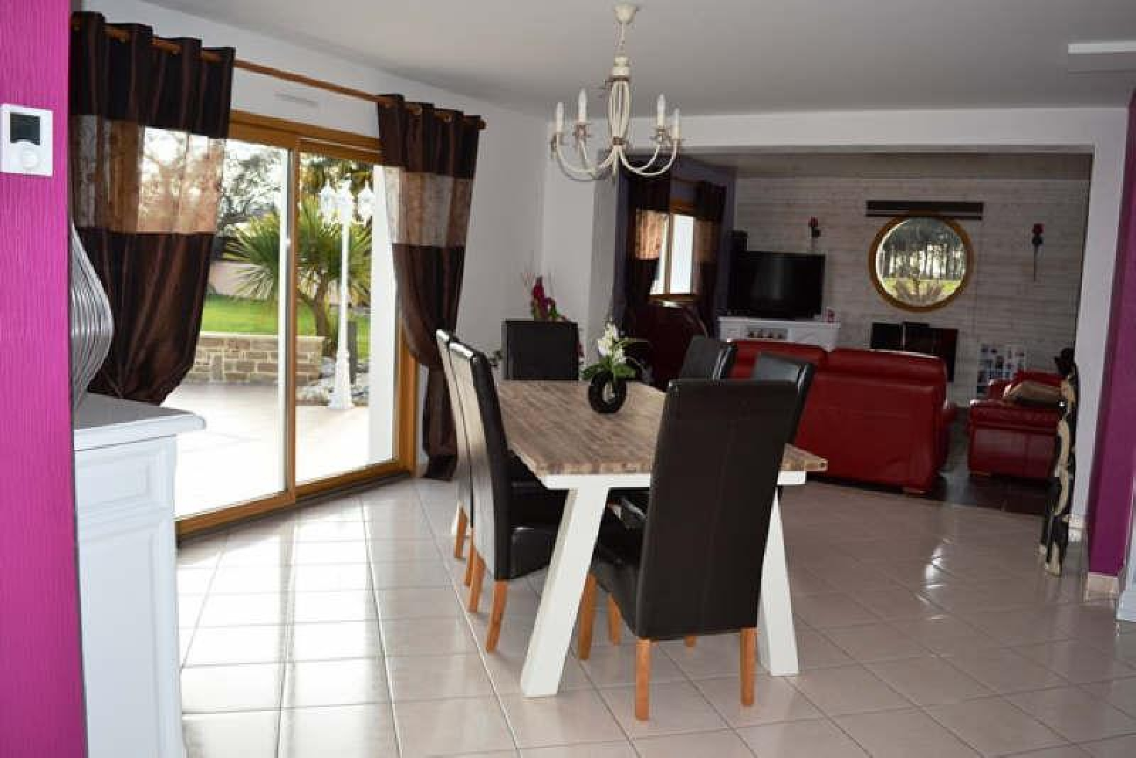 Très belle contemporaine hors lotissement proximité centre, elle est composée d'une entrée dressing, salon séjour d'environ 60m2 donnant accés sur deux terrasses dont une couverte, wc, en demi niveau 2 chambres , salle de bains au 1er étage 2 chambres salle d'eau et grand rangement, grand garage pour deux voitures, cave, accès bateau et camping car, jardin clos et arboré......
