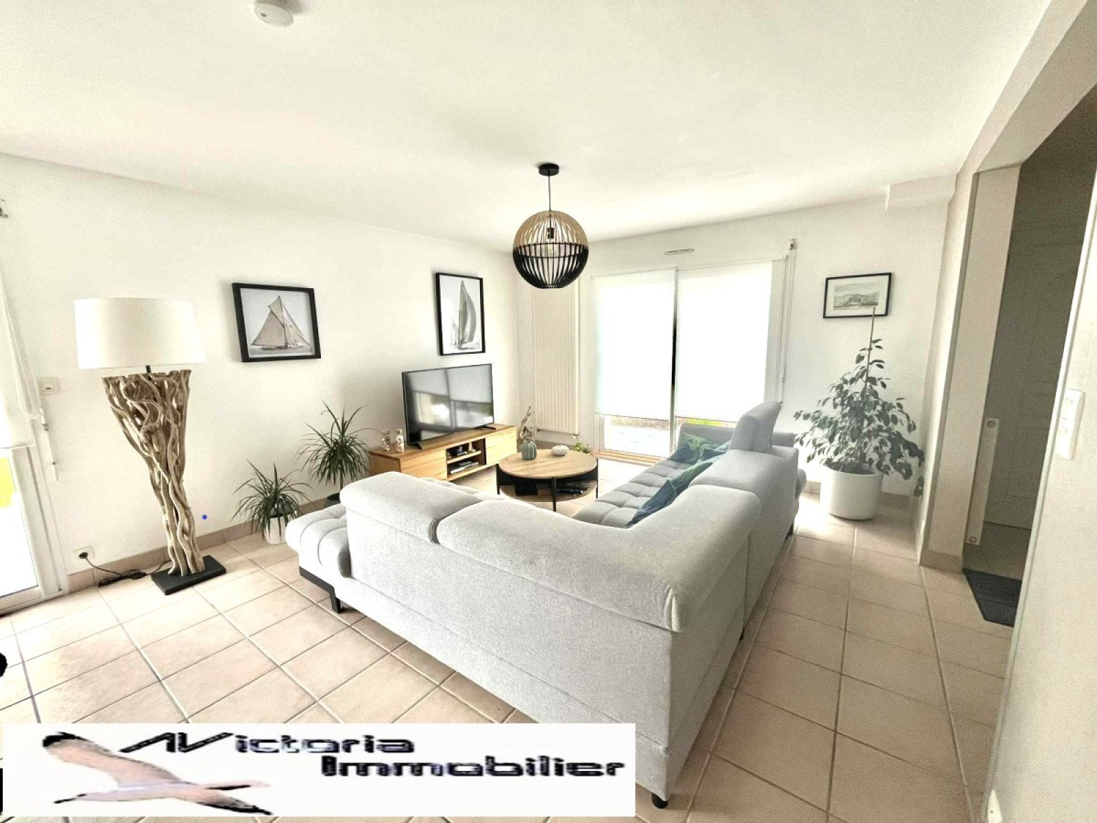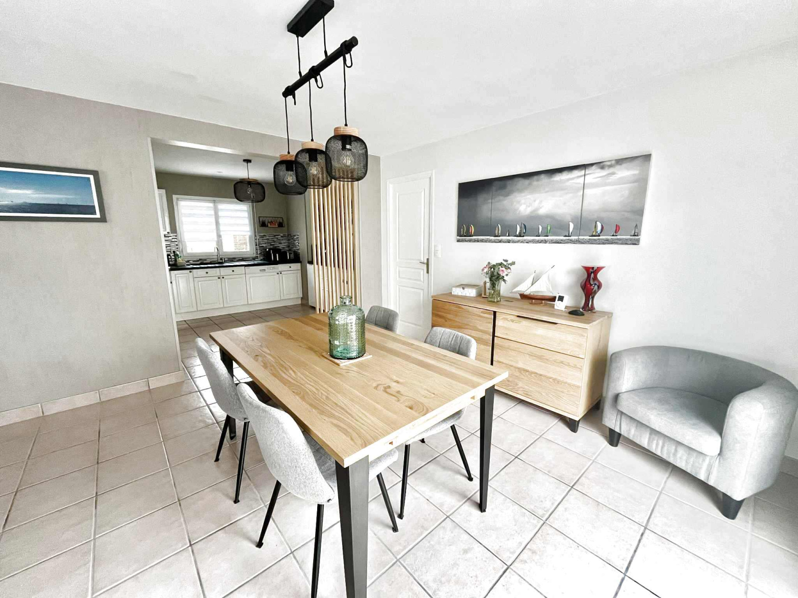 Un grand salon/séjour lumineux ouvert sur une cuisine