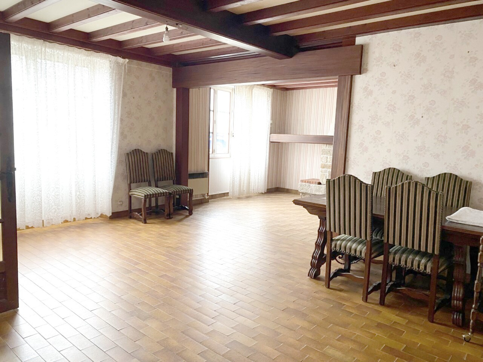 SOUS COMPROMIS Au calme proximité plage et commerces pour cette maison avec un beau potentiel, elle est composée en rdc, d'une entrée, bel espace salon séjour avec cheminée, cuisine avec accés sur véranda, coin buanderie,wc, à l'étage 3 chambres, salle de bains,wc, un grenier et une pièce pouvant faire office de chambre d appoint ou bureau.Jardinet clos et garage! Prévoir travaux .